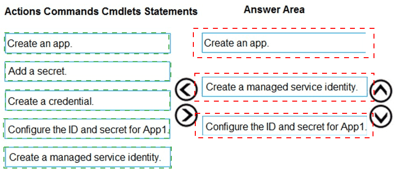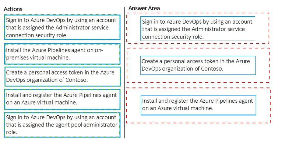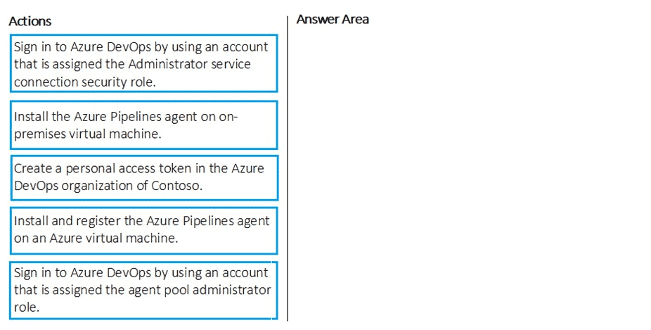 Whichthree actions should you perform in sequence? To answer, move the appropriate actions from the list of actions to the answer area and arrange them m the correct order.