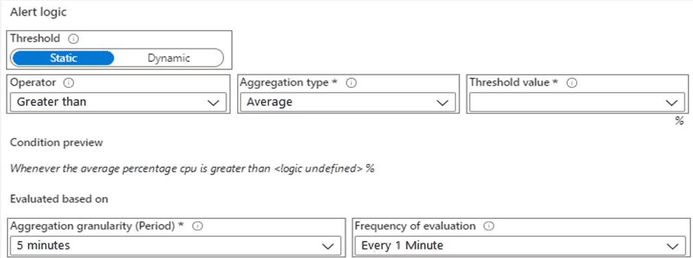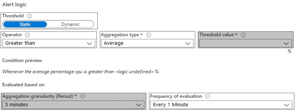 You need to configure the alert for VM1.The solution must meet the technical requirements.