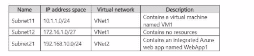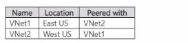 You have an Azure subscription that contains the virtual networks shown in the following table.