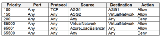 You are evaluating the effect of the application security groups on the network communication between the virtual machines in Sub2.