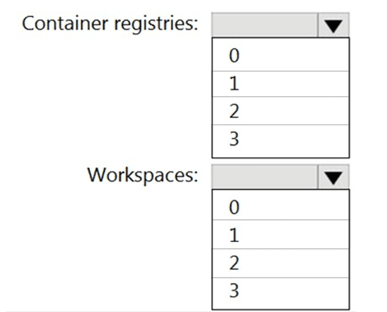 What is the minimum number of Azure container registries and Azure Machine Learning workspaces required?