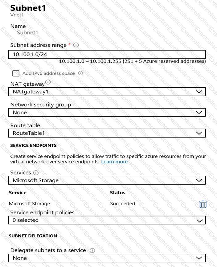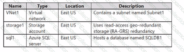 • Allow access from Subnet1 to storage1 and the read-only replica of storage1 in the paired Azure region.