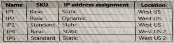 You have an Azure subscription that contains the public IPv4 addresses shown in the following table.