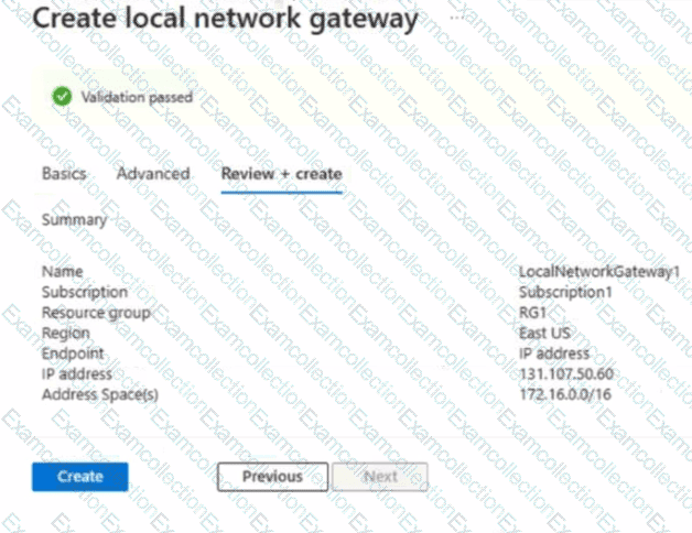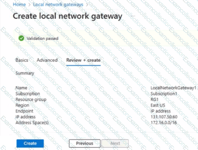 You create a local network gateway with the configuration shown in the gateway exhibit (Click the Gateway tab.)