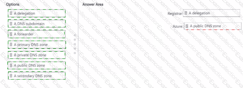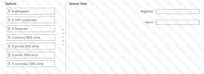 What should you create in the registrar, and what should you create in Azure? To answer, drag the appropriate options to the correct targets Each option may be used once, more than once, or not at all. You may need to drag the split bar between panes or scroll to view content.