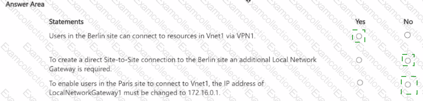 You have an Azure subscription that includes a virtual network named Vnet1 that contains a Virtual Network Gateway named Gateway 1.