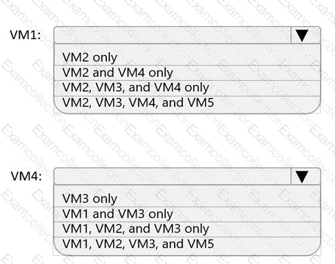 Which virtual machines can VM1 and VM4 ping successfully? To answer, select the appropriate options in the answer area.