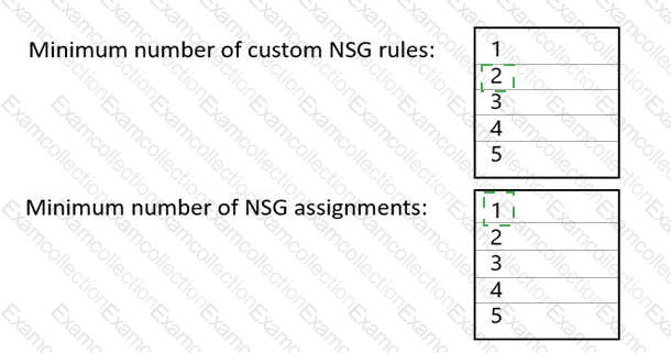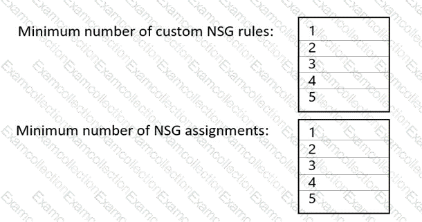 What is the minimum number of custom NSG rules and NSG assignments required? To answer, select the appropriate options in the answer area.