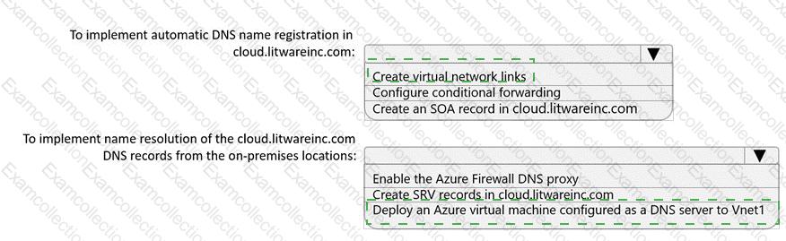 You need to implement name resolution for the cloud.liwareinc.com. The solution must meet the networking requirements.