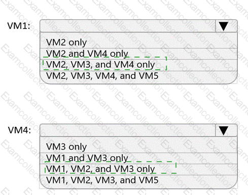 Which virtual machines can VM1 and VM4 ping successfully? To answer, select the appropriate options in the answer area.