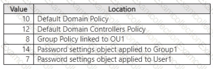 Your network contains an Active Directory Domain Services (AD DS) domain. The domain contains a user named User1. User1 is a member of a group named Group1 and is in an organizational unit (OL)} named OU1.