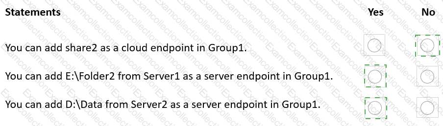 You have an Azure subscription that contains an Azure Files share named azshare1 and an Azure File Sync instance named Synd. Sync1 syncs Share1 with azshare1.