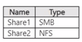 You have an on-premises server named Server1 that runs Windows Server and contains the shares shown in the following table.