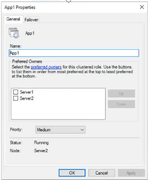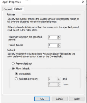 The Failover tab in App1 Properties is shown in the Failover exhibit. (Click the Failover tab.)