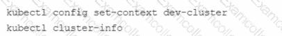 When you run the Kubect1 get nodes command, you only see the nodes from prod-cluster Which commands should you run to check the node status for dev-cluster?