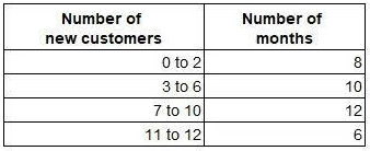 Every month for the last three years, a company has recorded the number of new customers for that month. The data have been summarised and grouped as follows: