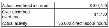 A company absorbs production overhead using a direct labour hour rate. Data for the latest period are as follows: