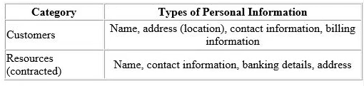 The table below indicates some of the personal information Clean-Q requires as part of its business operations: