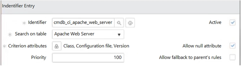 Assuming the Apache Web Server Identification Rule (CI Identifier) is configured as shown with the following