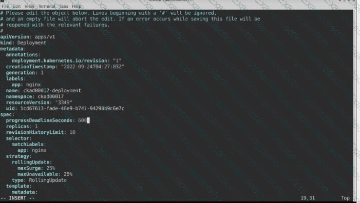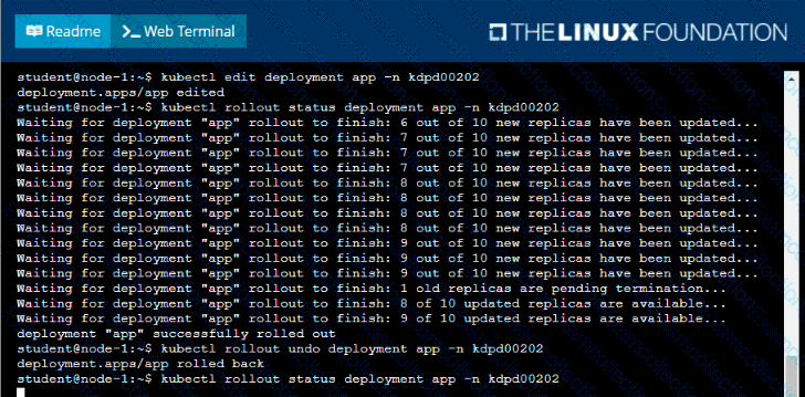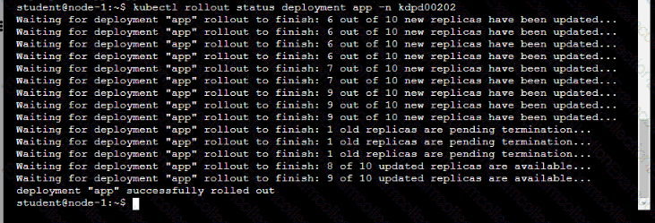 • Update the app deployment in the kdpd00202 namespace with a maxSurge of 5% and a maxUnavailable of 2%