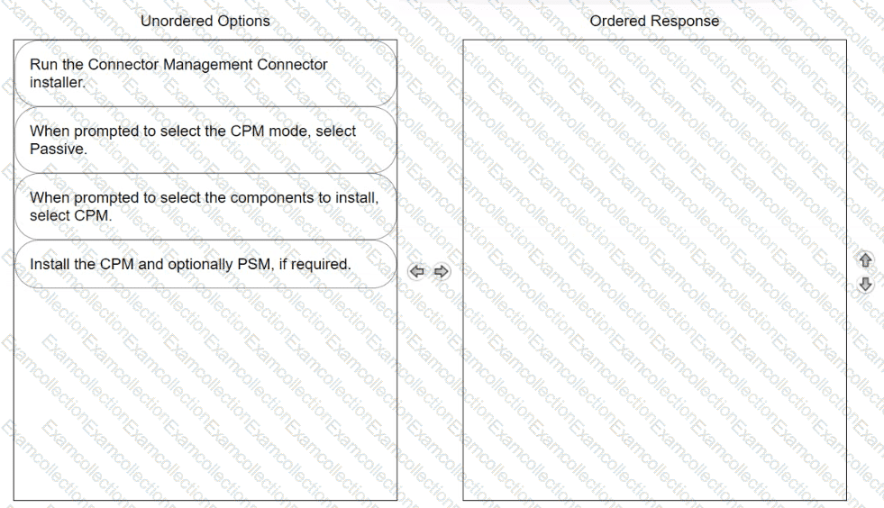 Arrange the steps to install passive CPM using Connector Management in the correct sequence