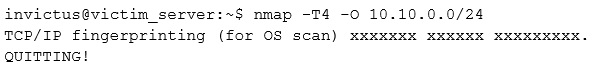 You have compromised a server on a network and successfully opened a shell. You aimed to identify all operating systems running on the network. However, as you attempt to fingerprint all machines in the network using the nmap syntax below, it is not going through.