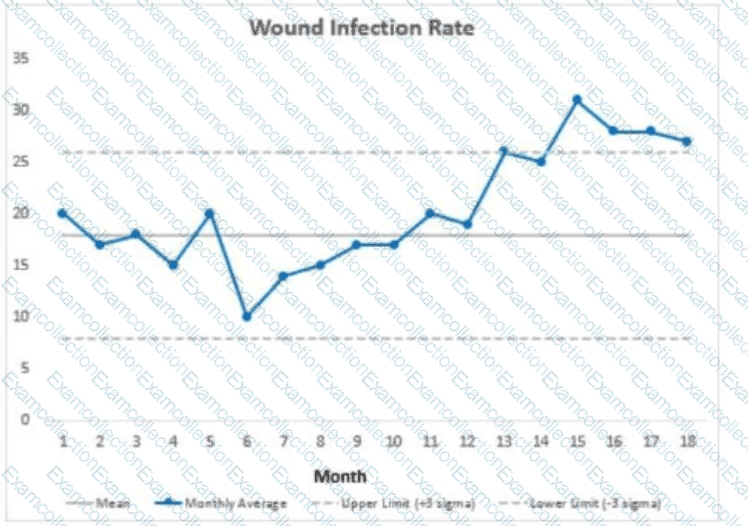 Analysis of the following wound infection rate control chart shows which of the following?