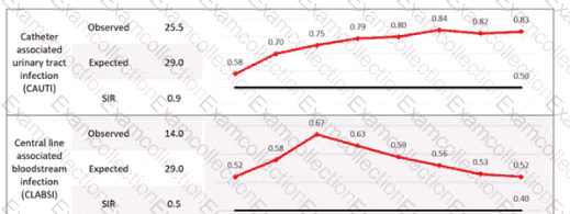 An organization Is tracking Infection rates to determine the benchmarks for the next fiscal year. The team Is analyzing the data for Infection rates. Which key variables are missing to interpret the graph?