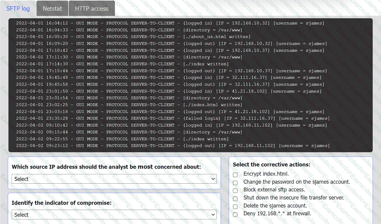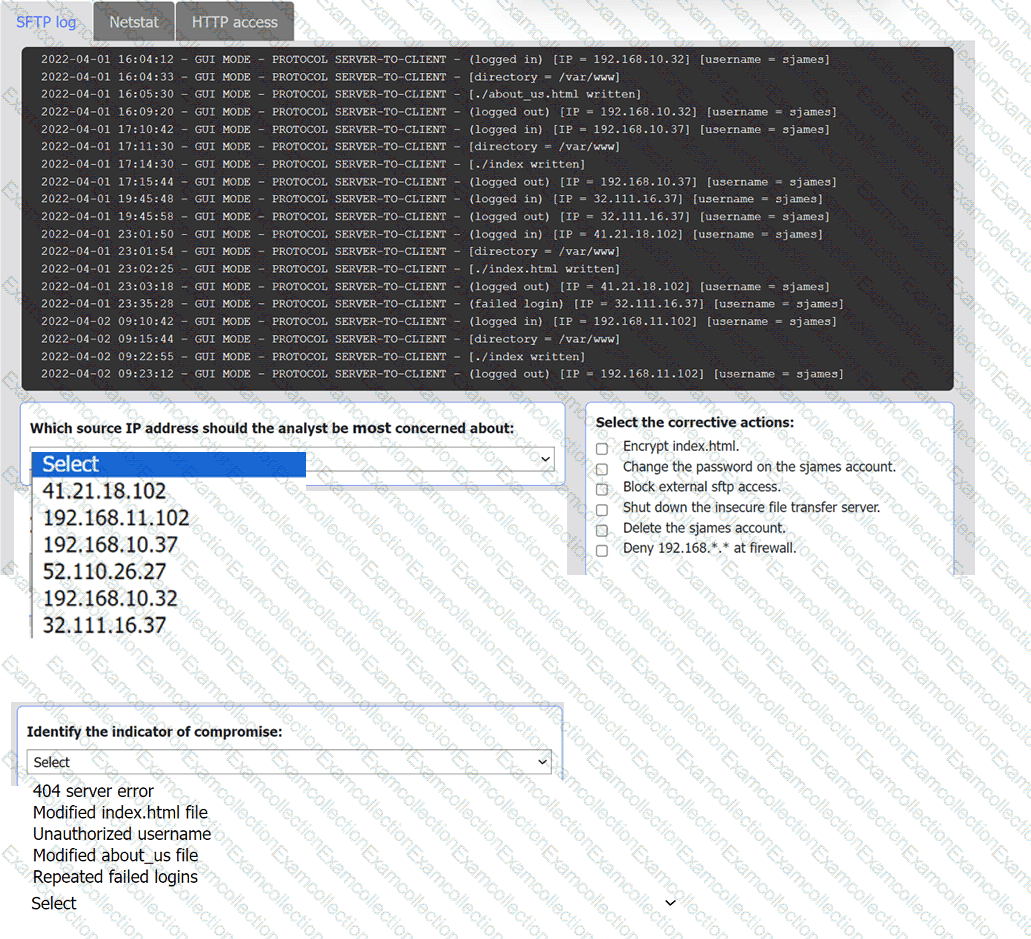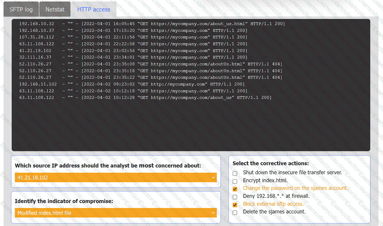 about, the indicator of compromise, and the two appropriate corrective actions.