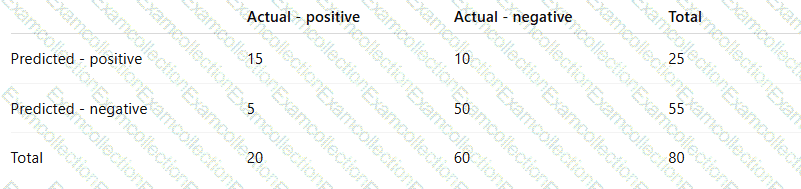 Consider a machine learning model where the model is attempting to predict if a patient is at risk for stroke. The model collects information on each patient regarding their blood pressure, red blood cell count, smoking status, history of heart disease, cholesterol level, and demographics. Then, using a decision tree the model predicts whether or not the associated patient is likely to have a stroke in the near future. Once the model is created using a training dataset, it is used to predict a stroke in 80 additional patients. The table below shows a confusion matrix on whether or not the model made a correct or incorrect prediction.