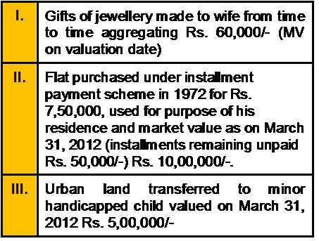 X furnishes the following particulars for the compilation of his wealth-tax return for assessment year 2012-13.