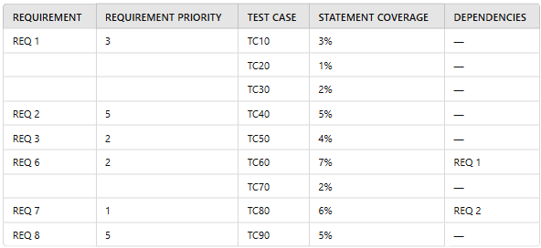 Consider the following table, which contains information about test cases from the test management system: