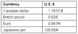 which of the following currency amounts has the greatest value in U.S. dollars?