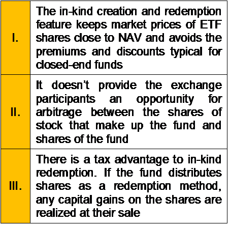 Which of the following is not a Key Benefit of the In-kind process used by the ETFs?