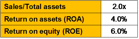 The company wants to increase its assets by Rs1 million, and it plans to finance this increase by issuing Rs1 million in new debt. This action will double the company’s interest expense, but its operating income will remain at 20 percent of its total assets, and its average tax rate will remain at 40 percent. If the company takes this action, which of the following will occur?