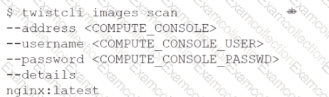 Which command should be used in the Prisma Cloud twistcli tool to scan the nginx:latest image for vulnerabilities and compliance issues?