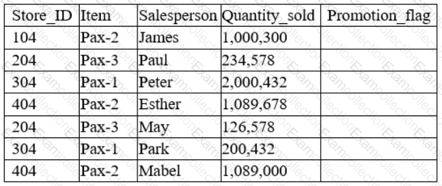 A data analyst has been asked to derive a new variable labeled “Promotion_flag†based on the total quantity sold by each salesperson. Given the table below: