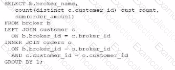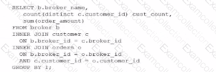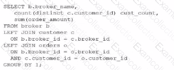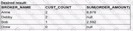 Which query would return a list of all brokers, a count of the customers each broker has. and the total order amount of their customers (as shown below)?
