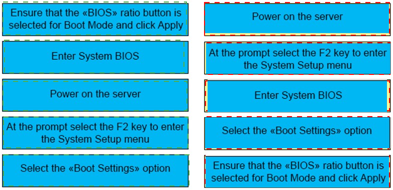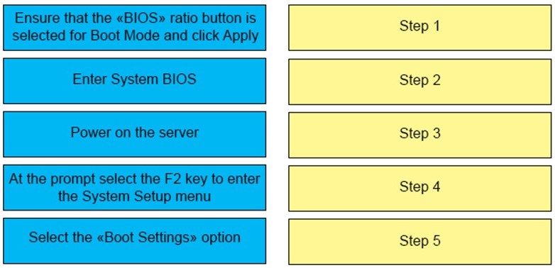 A system administrator needs to install an operating system (OS) on a server that is in BIOS mode. What is the correct sequence of steps to set the server into BIOS mode?