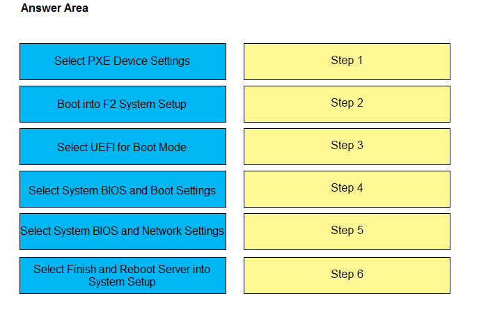 A system administrator needs to configure their Dell EMC PowerEdge server for PXE boot in UEFI mode. What is the correct order of steps to accomplish this?
