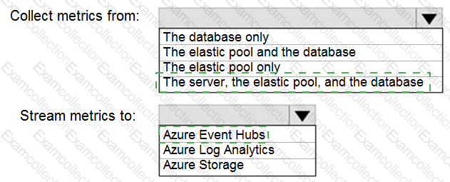 How should you collect and stream metrics? To answer, select the appropriate options in the answer area.