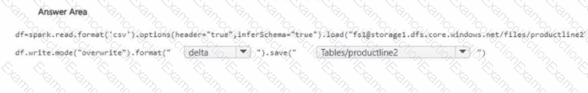 You need to migrate the Research division data for Productline2. The solution must meet the data preparation requirements. How should you complete the code? To answer, select the appropriate options in the answer area
