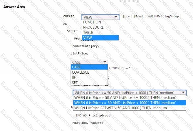 How should you complete the T-SQL statement? To answer, select the appropriate options in the answer area.