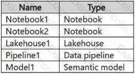 You have a Fabric workspace named Workspace1 that contains the items shown in the following table.