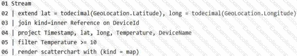 You have a KQL database that contains two tables named Stream and Reference. Stream contains streaming data in the following format.