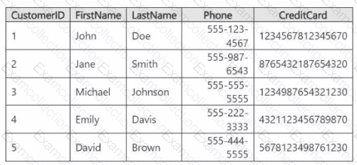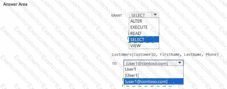 You need to provide User1 with access to the Customer table. The solution must prevent User1 from accessing the CreditCard column.