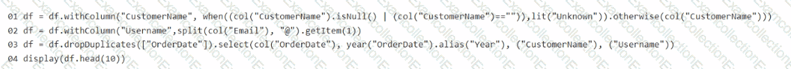 You have a table in a Fabric lakehouse that contains the following data.