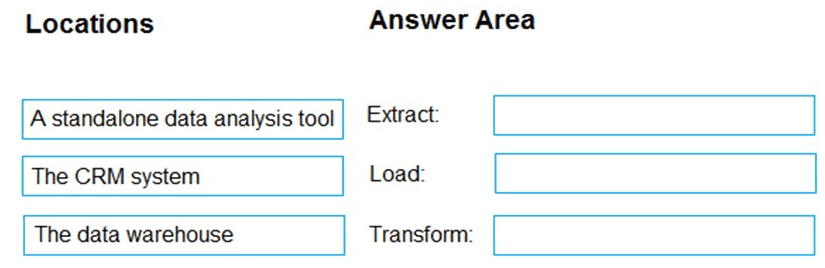 Your company plans to load data from a customer relationship management (CRM) system to a data warehouse by using an extract, load, and transform (ELT) process.
