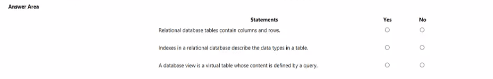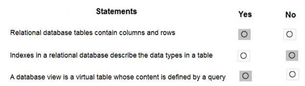 For each of the following statements, select Yes if the statement is true. Otherwise, select No.