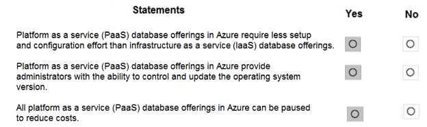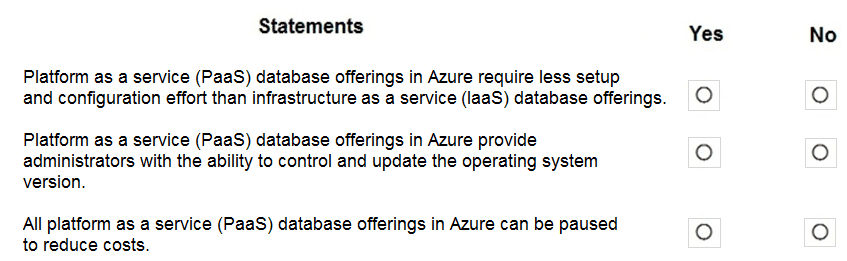 For each of the following statements, select Yes if the statement is true. Otherwise, select No.